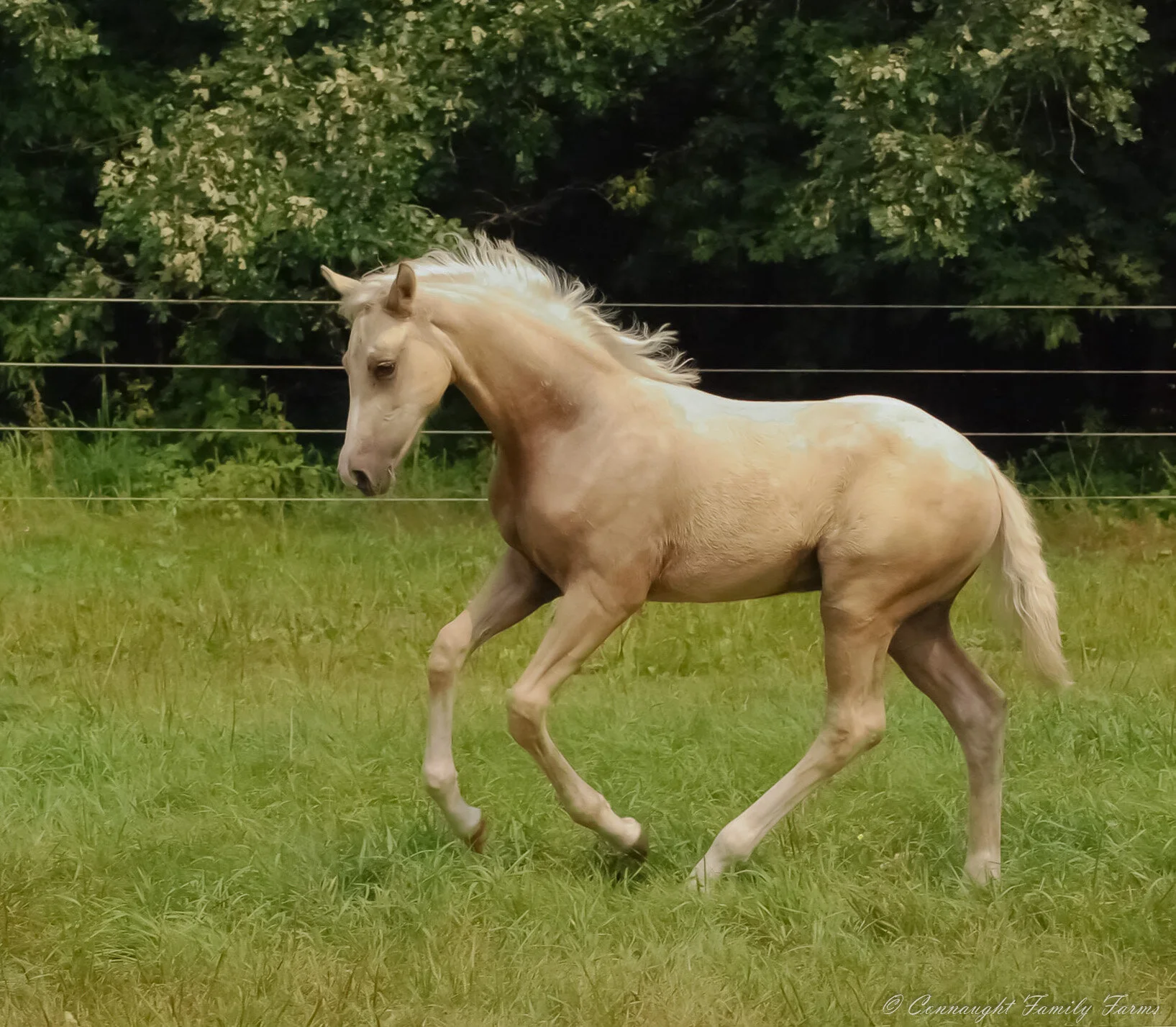 Fox Creek’s Masterpiece is a stunning stallion with outstanding conformation. A gorgeous topline with a well set neck and uphill build, he tops it all off with a beautiful head and expression. The entire effect is a pony that exemplifies the German Riding Pony “type”. Masterpiece has excellent hindquarter technique showing a great deal of articulation and action in the hock enabling him to really “sit” and have great natural ability for the passage and piaffe. He has great freedom in his shoulder enabling him to have a lot of range in the trot with many “gears” for the rider to work with. His canter is uphill and powerful and his walk is excellent. He has a willing work ethic that is responsive to the riders’ aids without being reactive. In this way he is forward but not hot. This is a riding pony that is just simply described as: “the entire package”.